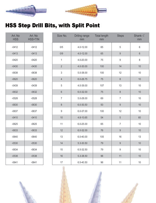 HSS Step Drill Bits.with Split Point
